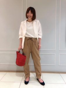 ジャケットやパンプスを合わせて少しきれいめにまとめた